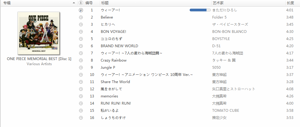 [动漫音乐] ONE PIECE「MEMORIAL BEST」无损FLAC |